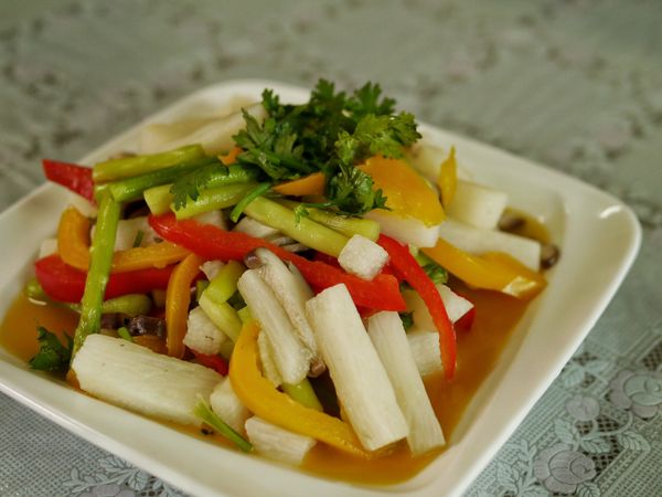 ZSROSE 5 食譜 34 粉絲 追蹤 甜椒山藥煮蘆筍 描述 山藥口感清脆;甜椒、蘆筍的甜味;草菇的鮮味 味道搭配平衡,方便料理、營養無負擔 #素食 #蔬食 #全素 #家常食材 #根莖類 #蘆筍 收錄在:【第114週】一週菜單 482 說讚 1 一起做 讚收藏分享分享FacebookLINE複製連結列印 時間 10 分鐘 熱量 VIP 限定功能VIP 獨享 食材 白山藥 300g 紅色黃色甜椒 200g 蘆筍 300g 草菇 200g 調味料 油、鹽 適量 香菜 適量 步驟 山藥、甜椒、蘆筍、草菇 洗淨、切條 山藥、甜椒、草菇 先下鍋,中火煮,適量加點水,加調味 接著放入蘆筍,快速拌煮起鍋,最後灑上少許香菜 小撇步 蘆筍可以削皮去掉多餘纖維 1.5 萬 瀏覽 2015/09/22 發表