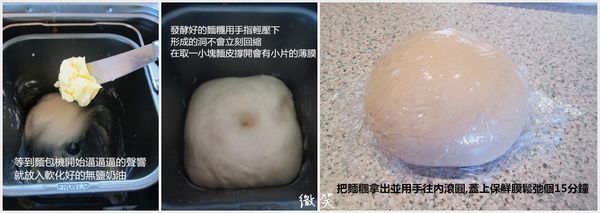 微笑の美味 86 食譜 1,064 粉絲 追蹤 火腿香蔥捲~ 軟香拉絲麵包 描述 跟甜麵包相比還是比較喜歡吃像這樣的鹹味麵包, 它夾帶著蔥香. 火腿香, 組織柔軟好吃還會拉絲喲 製作流程請直接點擊圖片即可看到 #烘焙 #麵包 133 說讚 1 一起做 讚收藏分享分享FacebookLINE複製連結列印 熱量 VIP 限定功能VIP 獨享 食材 水 130g 全蛋液 27g 白砂糖 40g 全質奶粉 10g 高筋麵粉 250g 鹽巴 1/4小匙多一點 速發酵母 4g 無鹽奶油 20g 步驟 最後的圖片是刷上一層蛋液,以180度烤約12分鐘 拉絲又軟香的成果 小撇步 食譜參考改編於一本烘培書 歡迎來逛逛我的FB: 美味料理樂分享 * 微笑廚房社團: https://www.facebook.com/groups/750216625000477/ 7,473 瀏覽 2015/05/28 發表