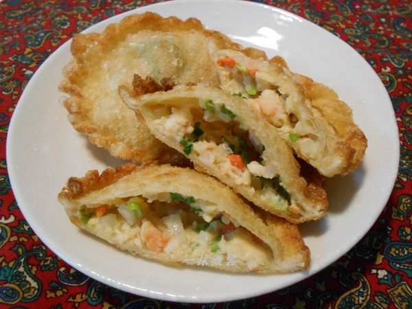 包水餃常常剩一些用不完的水餃皮,以鮮蝦加絞肉或雞胸肉和蔬菜丁包成飛碟餅,香酥美味的口感讓人驚艷哦!